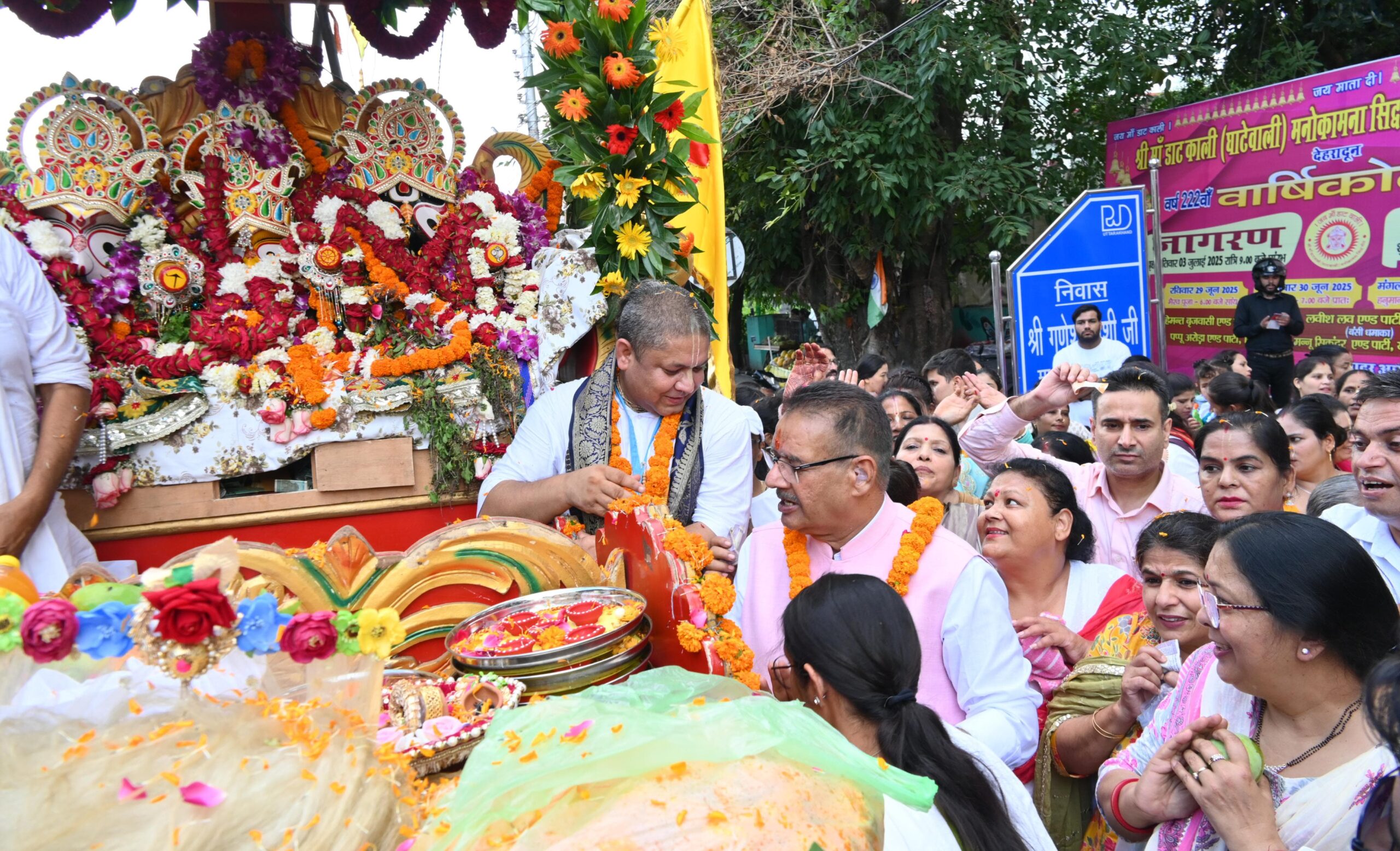 इस दौरान उन्होंने भगवान जगन्नाथ का आर्शीवाद लिया और भक्तों पर पुष्पवर्षा की। श्रीकृष्णा के भक्तों के लिए उन्होंने जूस, प्रसाद का वितरण भी किया। इस अवसर पर कैबिनेट मंत्री की धर्मपत्नी निर्मला जोशी, नेहा जोशी, वंदना बिष्ट, अशोक गुप्ता, मनोज क्षेत्री, ओमप्रकाश बवाड़ी, सुन्दर पयाल आदि उपस्थित।