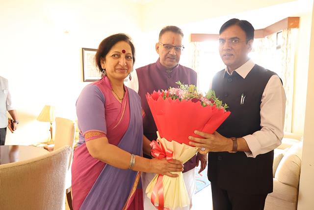 देहरादून, 11 जुलाई। प्रदेश के कृषि एवं ग्राम्य विकास मंत्री गणेश जोशी ने मसूरी में केंद्रीय श्रम एवं रोजगार तथा युवा मामले एवं खेल मंत्री डॉ. मनसुख मांडविया का उत्तराखण्ड आगमन पर स्वागत एवं अभिनंदन किया। उन्होंने हाउस ऑफ हिमालयास के स्थानीय उत्पादों से निर्मित किट भी भेंट की। इस दौरान मंत्री जोशी ने केंद्रीय खेल मंत्री से मसूरी भिलाड़ू में बहुप्रतीक्षित खेल मैदान के लिए भी केंद्र का सहयोग मांगा। केंद्रीय मंत्री डॉ. मांडविया ने इस पर सकारात्मक रुख अपनाते हुए हरसंभव सहयोग का आश्वासन दिया।