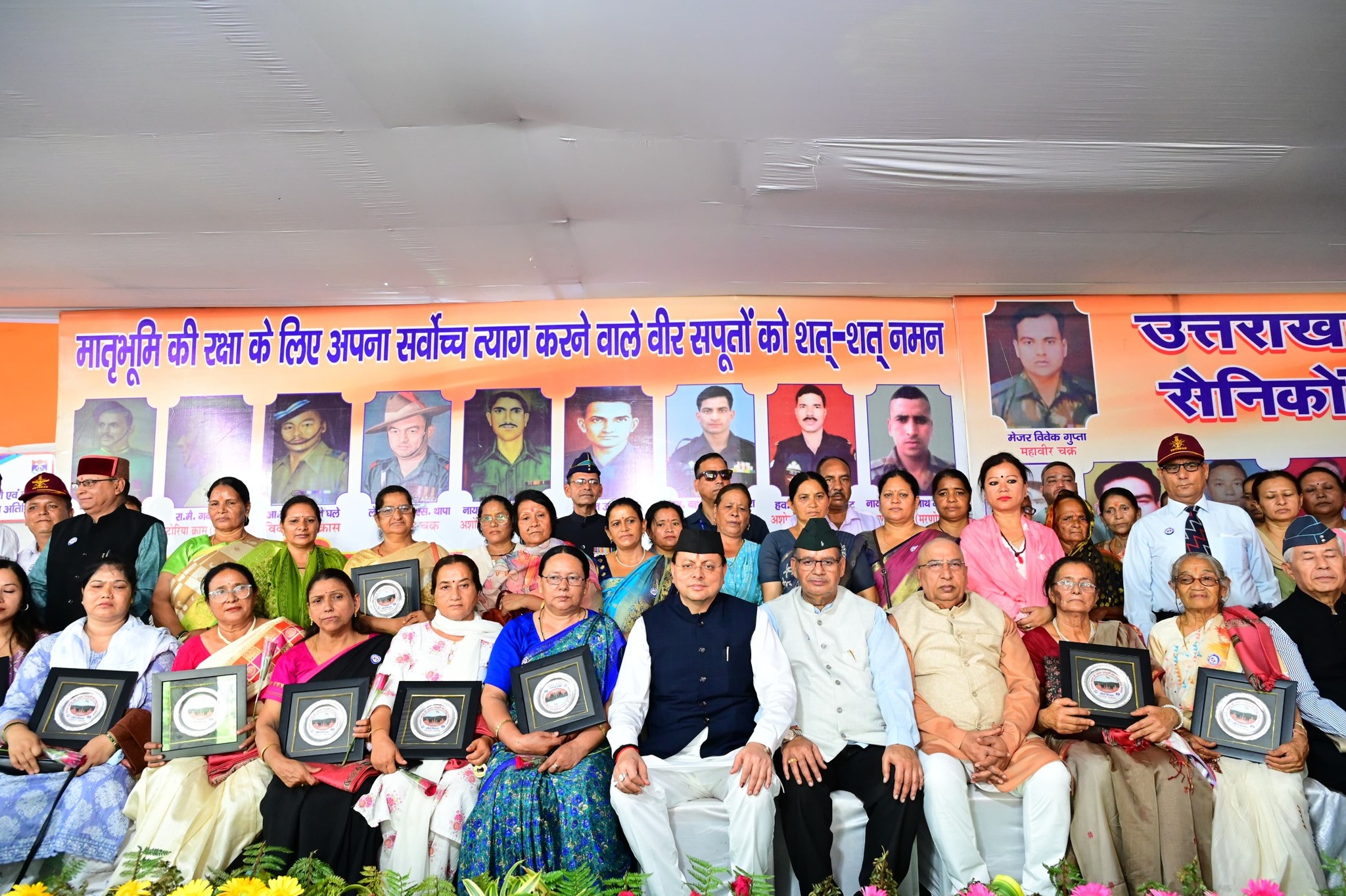 देहरादून-मुख्यमंत्री पुष्कर सिंह धामी ने शनिवार को गांधी पार्क, देहरादून में कारगिल विजय दिवस (शौर्य दिवस) के अवसर पर शहीद स्मारक पर पुष्प चक्र अर्पित कर कारगिल शहीदों को श्रद्धांजलि दी। मुख्यमंत्री ने इस अवसर पर कारगिल शहीदों के परिवारजनों को भी सम्मानित किया।
