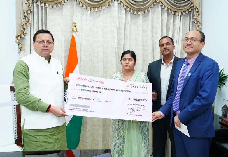 मुख्यमंत्री पुष्कर सिंह धामी से बुधवार को मुख्यमंत्री आवास में यूनियन बैंक ऑफ़ इंडिया के प्रतिनिधिमंडल ने भेंट की। इस दौरान यूनियन बैंक ऑफ़ इंडिया द्वारा उत्तरकाशी जिले के धराली एवं हर्षिल क्षेत्र में आई आपदा के राहत कार्यों के लिए ₹ 1 करोड़ की धनराशि का योगदान दिया गया।