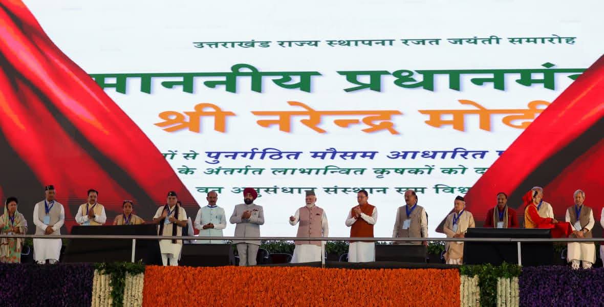 उत्तराखण्ड राज्य स्थापना के रजत जयंती वर्ष समारोह में प्रधानमंत्री श्री नरेंद्र मोदी ने लगभग ₹8260.72 करोड़ की योजनाओं का लोकार्पण और शिलान्यास किया।
