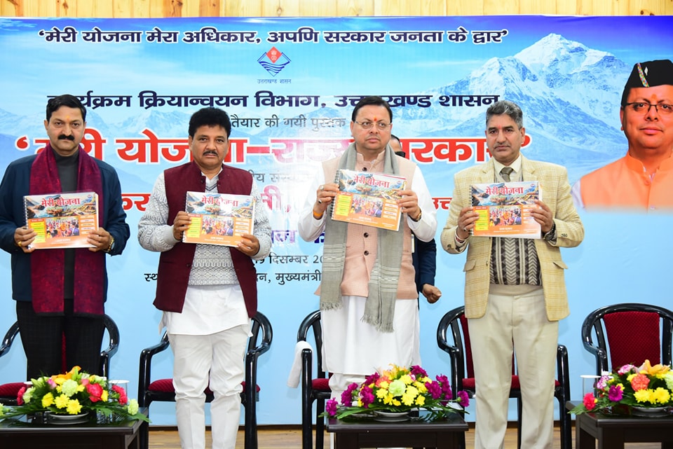 देहरादून-मुख्यमंत्री पुष्कर सिंह धामी ने आज मुख्यमंत्री कैम्प कार्यालय स्थित मुख्य सेवक सदन में कार्यक्रम क्रियान्वयन विभाग द्वारा प्रकाशित “मेरी योजना-राज्य सरकार” पुस्तक का विमोचन किया।